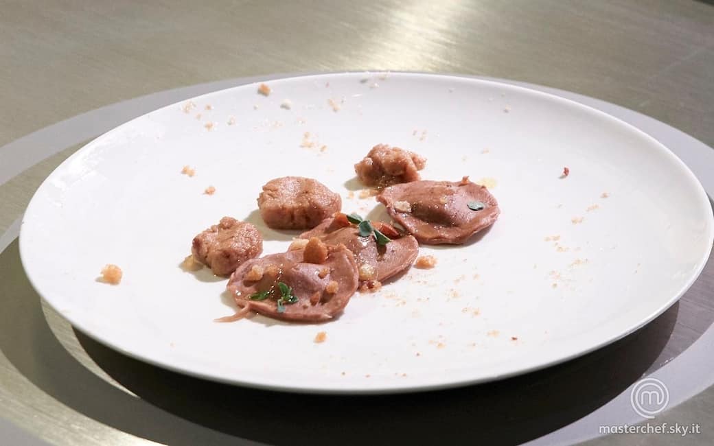 Nel frattempo tostare la michetta tagliata in fetta in forno, modalità grill, per qualche minuto. Sciogliere una noce di burro in una padella, aggiungere il pane tostato tritato grossolanamente, il fondo dei petti e delle cosce, la panna e poco brodo. Amalgamare e frullare fino a ottenere un composto morbido ma non liquido. Tenere da parte una manciata di briciole e tostarle in una padella con un filo di oio evo, una noce di burro e uno spicchio d’aglio. Realizzare il ripieno: tritare grossolanamente i petti e le cosce disossate. Tritare al cutter con il pecorino grattugiato, poco fondo bruno, una presa di sale e una macinata di pepe. Tenere da parte.