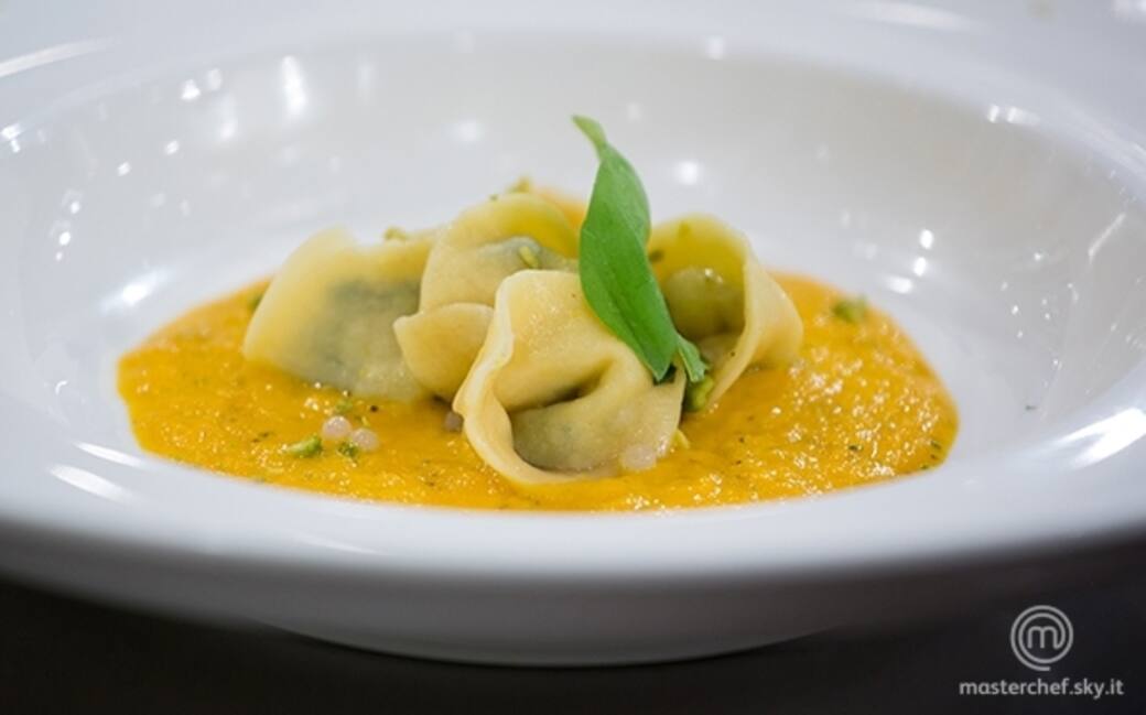 Cuocere i cappelletti e mantecarli in padella con poco olio, servirli con la salsa a specchio sul piatto e decorare con basilico e caviale di lumache.