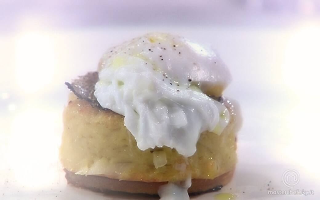 Cuocere poi l’uovo in camicia e il tortino in forno a 135° per 20 minuti. Impiattare e guarnire con il tartufo.