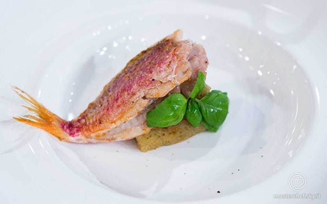 Ultimata la cottura posizionare al centro il cilindro di melanzana ripiena e adagiare con cura la triglia sopra di esso. Al momento del servizio al tavolo versare alla base del piatto la salsa di melanzana affumicata.