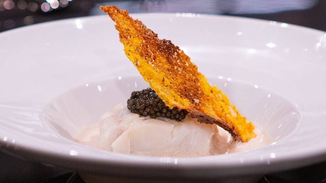 Il baccalà e i suoi amici - Baccalà alla vicentina su spuma di cipolla con crosta di polenta e caviale.