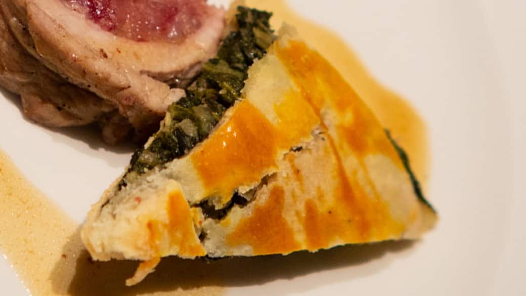Durante l'esterna presso il Teatro Regio di Parma, la brigata blu di Marisa si è cimentata co il tipico Erbazzone Reggiano, preparazione che ha accompagnato un'altra caratteristica ricetta: il cotechino in camicia.