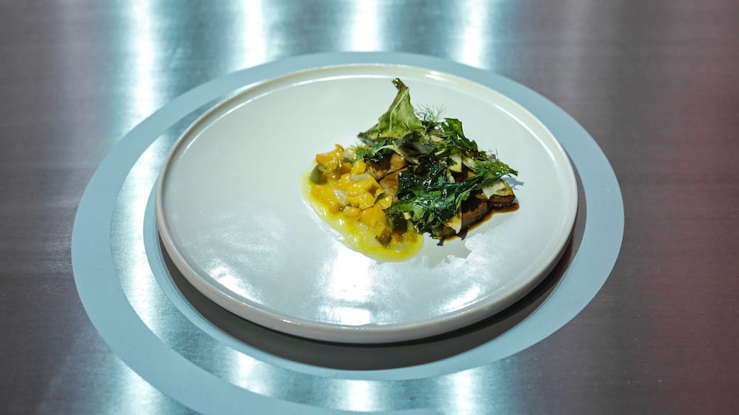Sul lato del piatto, aggiungere la chutney di nespole.