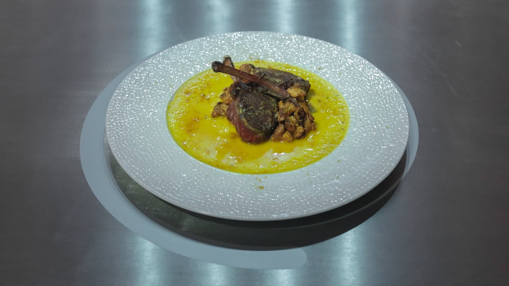 Infine, adagiare i due carré di cervo facendo incrociare le ossa.