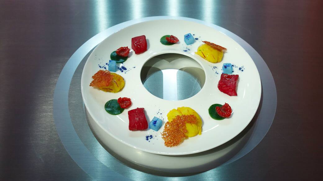 Con il composto ottenuto, creare una venina gelificata. Infine, ricavare un cerchio con l'ausilio di un coppapasta.