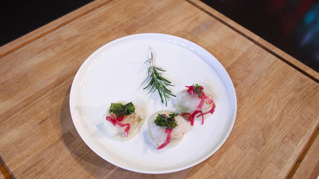 Giulio ha conquistato il suo grembiule bianco grazie al piatto 'È Venerdì', un filetto di baccalà con crema di ceci e cipolla in agrodolce.