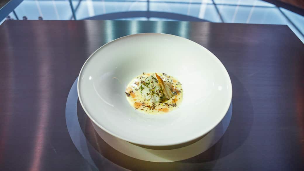 Cuore di merluzzo con crema di pepino e acqua di ciliegie di Jack