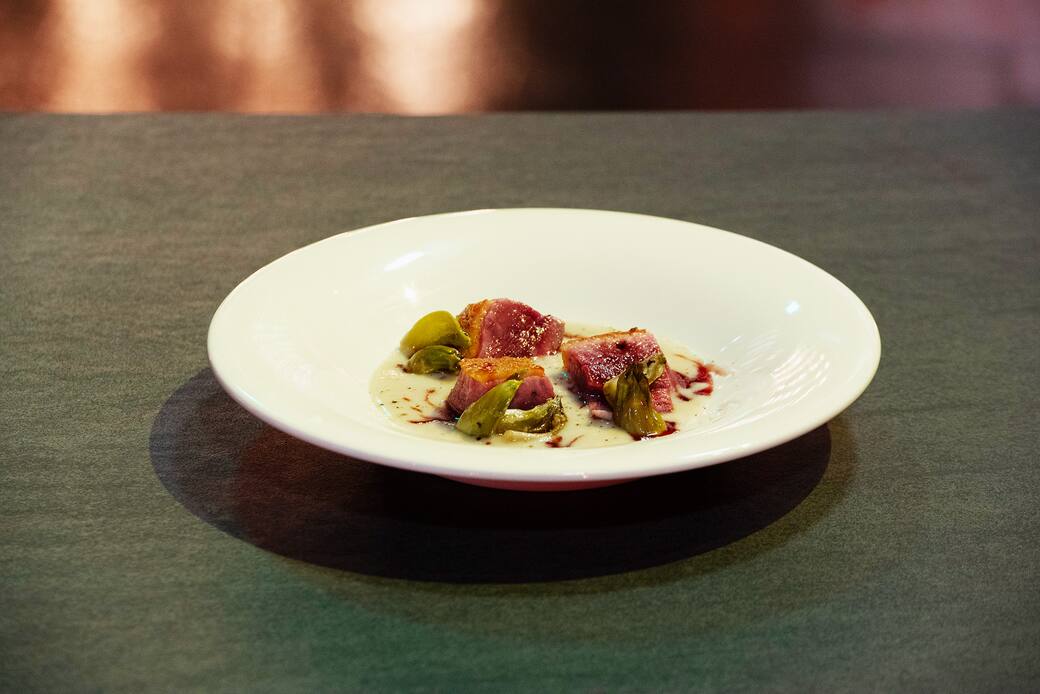 Bocconcini d'anatra su crema di topinambur di Matteo Canzi