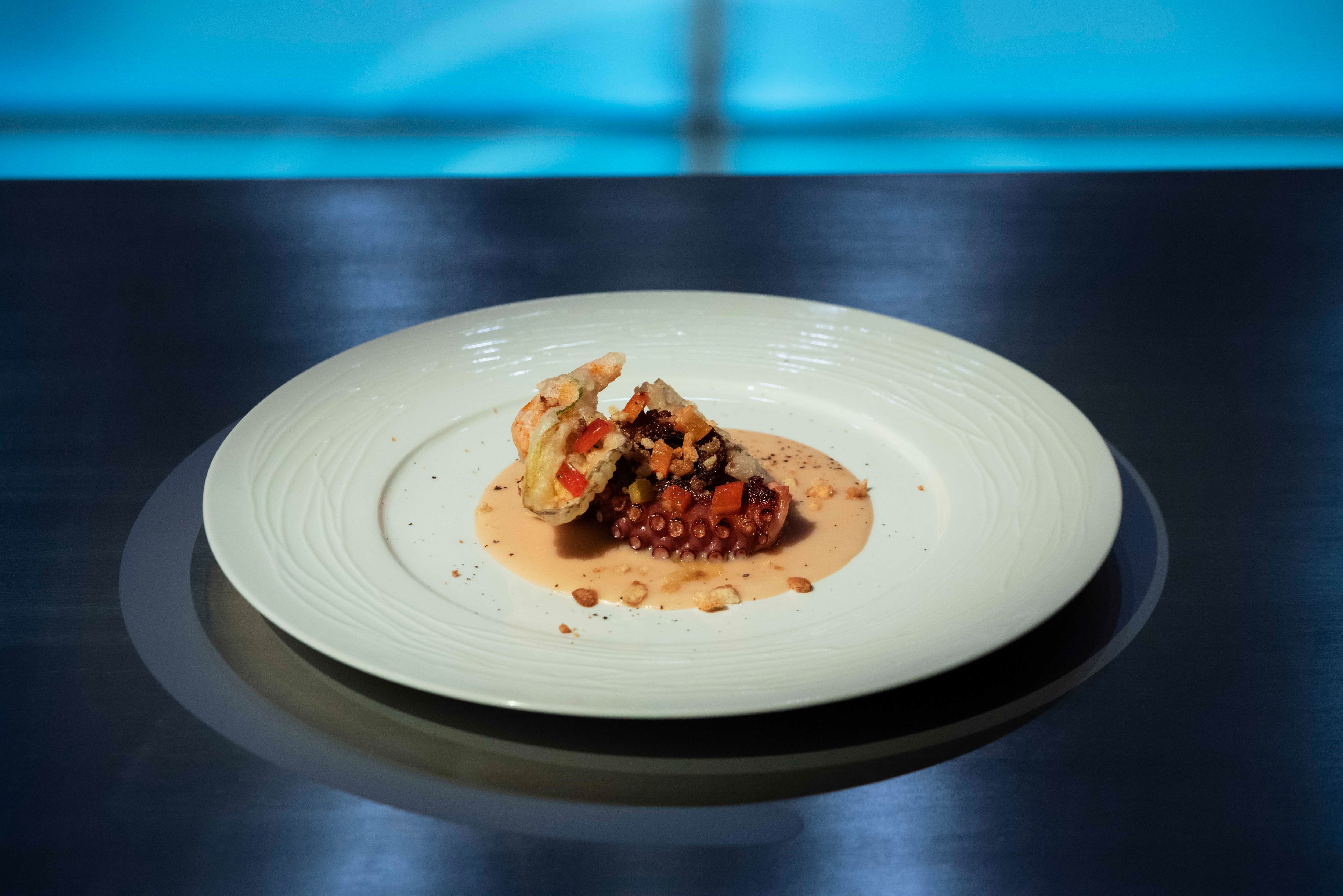 Polpo su crema di patate e verdure in tempura di Matteo Rinaldi