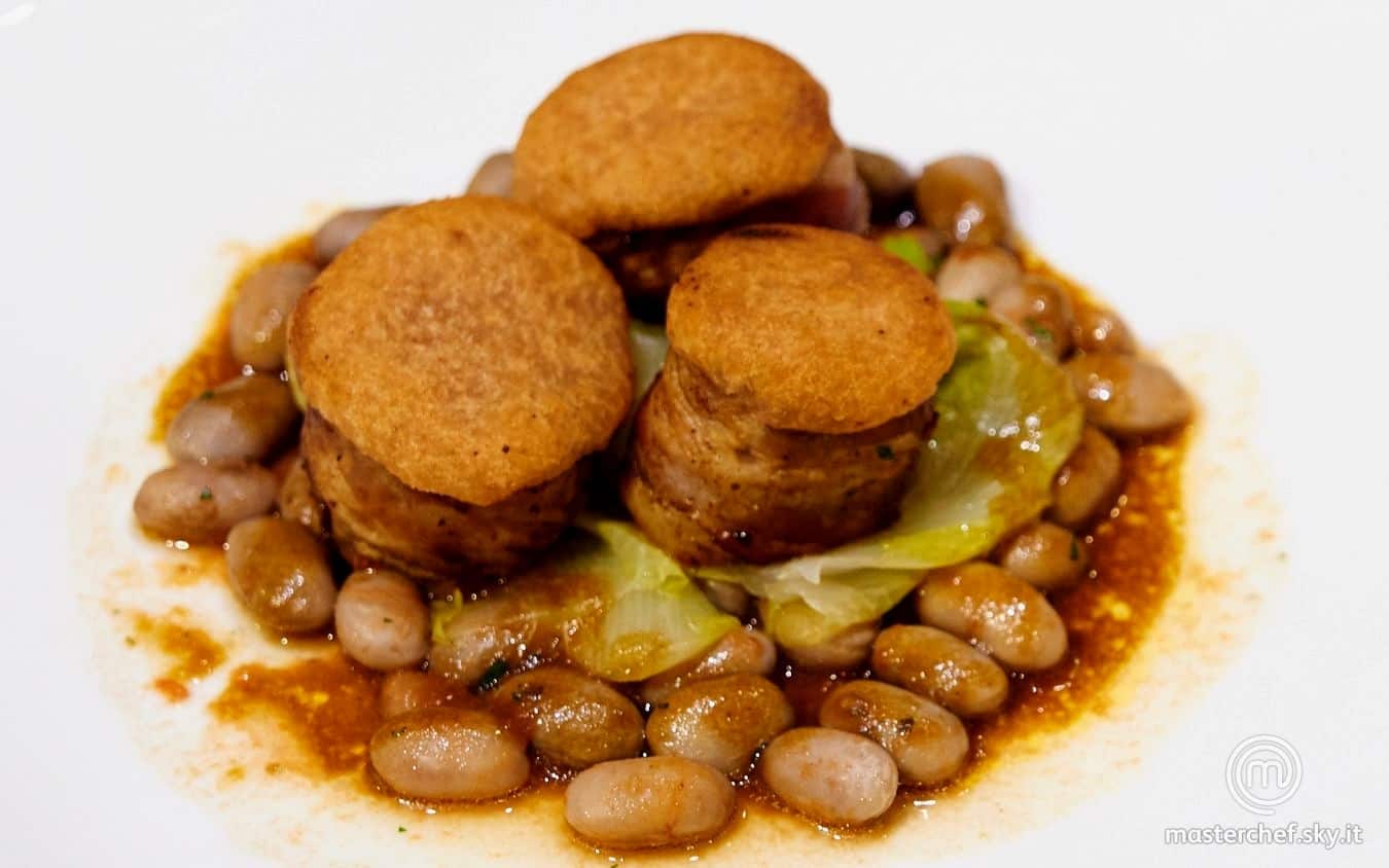 Filetto di maiale, crosta di mostarda di Cremona e borlotti