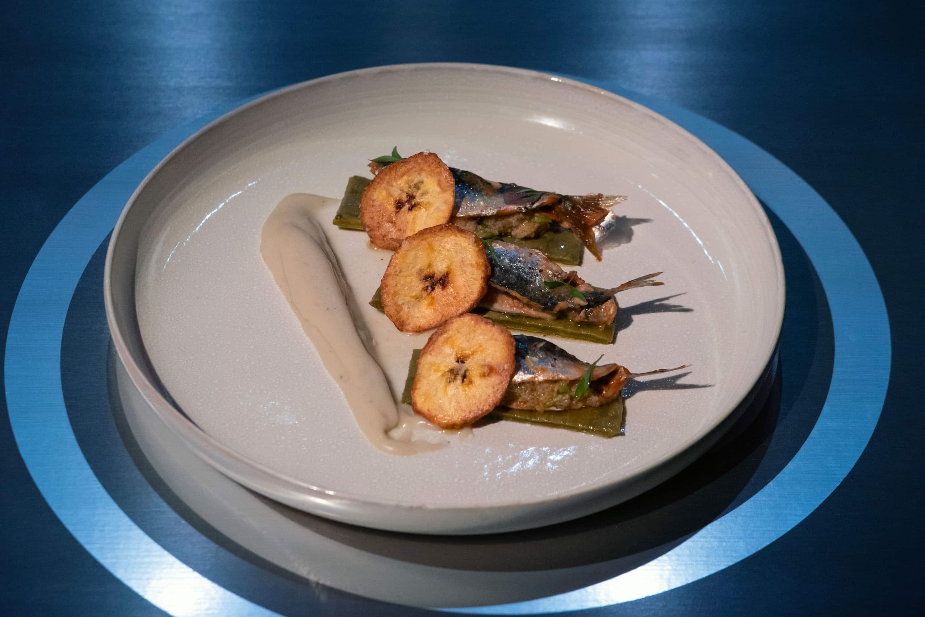 Sarde con chips di platano