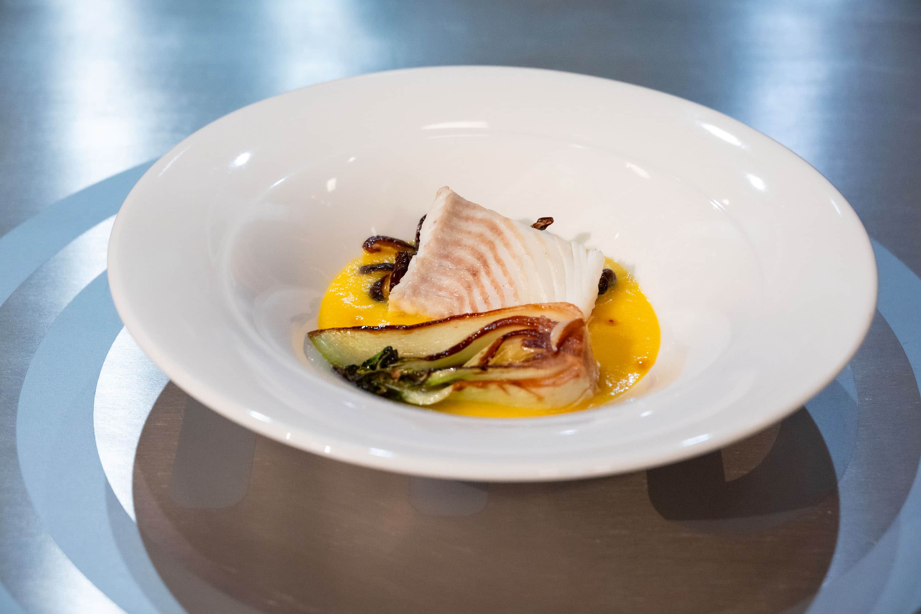Filetto di rombo con crema di daikon allo zafferano