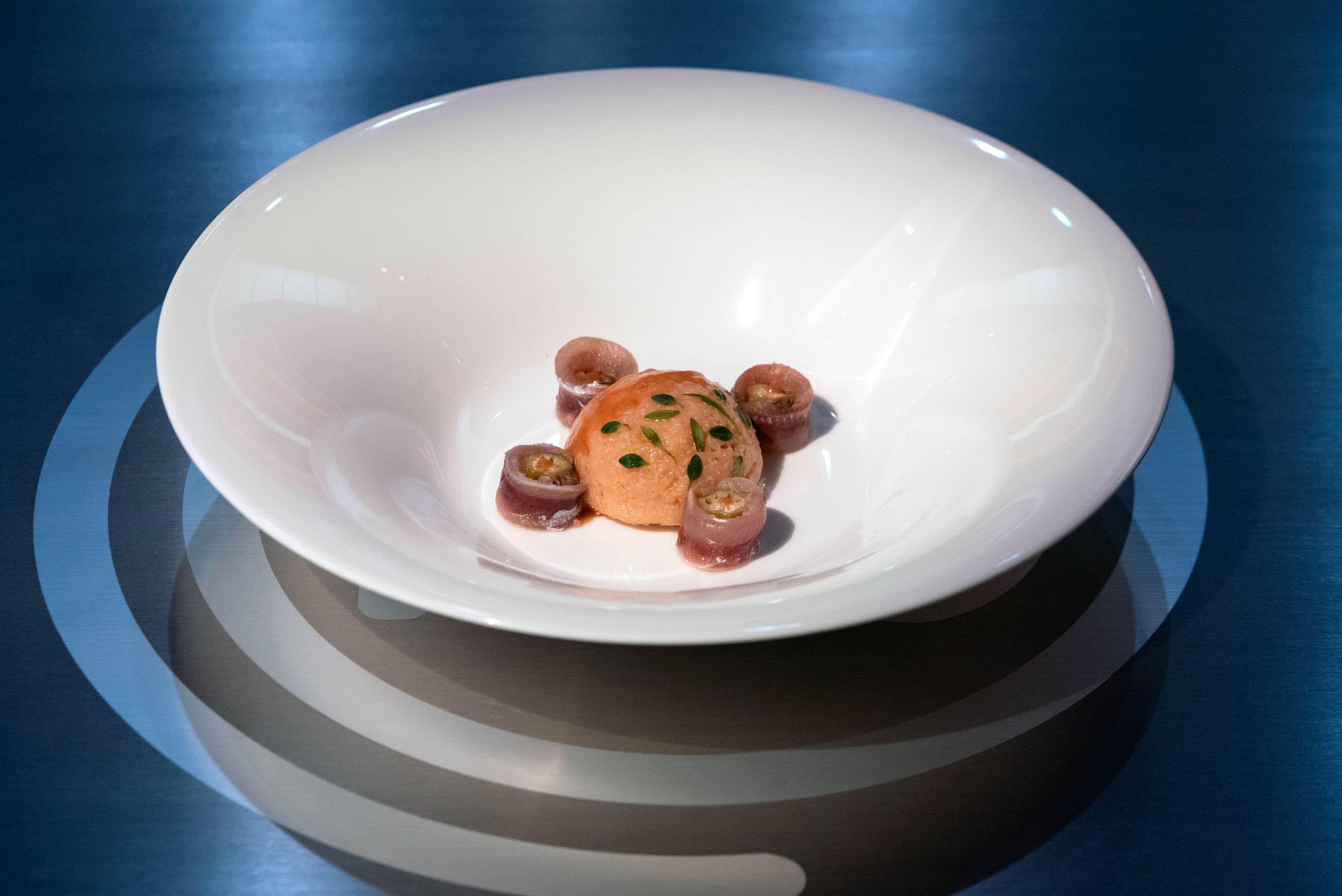Gusci di yuba con salsa di bieta, peperoni e tartare di ostrica di Matteo Canzi